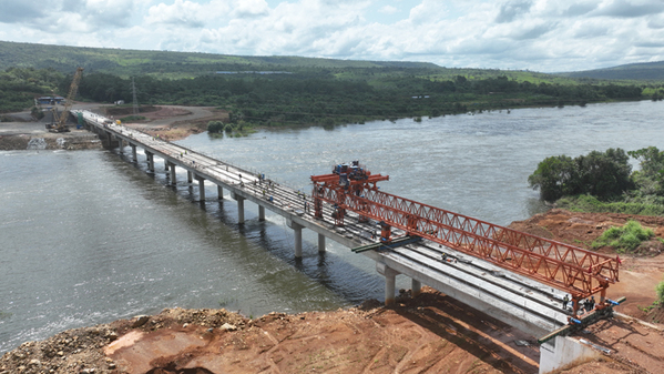 几内亚时间10月11日,伴随着最后一榀简支T梁精准落位、稳固衔接,由水电三局承建的几内亚阿玛利亚水电站下游交通桥架T梁架设备全部完成,标志着该交通桥实现主体结构施工节点目标,为2025年年底交通桥通车奠定了基础。 作为阿玛利亚水电站施工与长期运行的核心通道,下游交通桥坐落于孔库雷河之上,距离大坝下游约1200米处。桥梁全长365.08米,桥面宽度达9米,采用25米简支T梁结构设计,共设14跨。建成后,将彻底打通项目现场的交通瓶颈,大幅提升运输效率,为水电站主体工程的顺利推进提供坚实的交通保障。 项目部始终以高标准、严要求推进下游交通桥的施工工作,通过科学统筹规划、精准把控进度,攻克了多项施工难题,确保交通桥各关键节点有序落地,经过五个月的昼夜奋战,最终完成全部简支T梁的架设。施工过程中,项目团队严格遵循专项施工方案要求,严格安全技术交底,注重细节的管控,实行全过程旁站监督;同时对T梁架设主要JSHB30100型步履式双导梁架桥机的检修、保养,充分发挥该设备高精度、高效率、高安全性的优势,有效确保了每榀T梁架设的安全稳定、精准到位,为架梁工程的顺利完成提供了坚实的技术支撑。 项目团队将聚焦桥面系及后续工程建设,以精益求精的工匠精神和高效务实的工作作风,全力保障项目高质量履约,持续深耕当地能源建设领域,为推动中国与几内亚两国能源合作迈向更深层次、实现更高水平发展贡献亚星游戏官网智慧与力量。 |