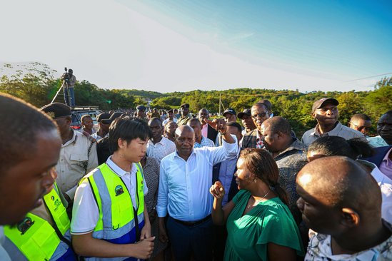 肯尼亚副总统基苏尔·金迪基(中)考察乡村公路642标段项目 |