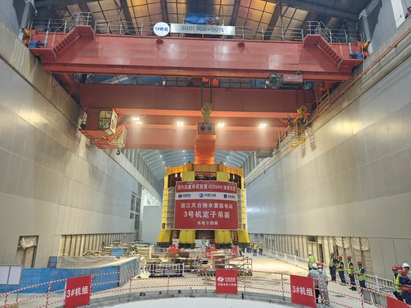 浙江天台抽水蓄能电站3号机定子顺利吊装